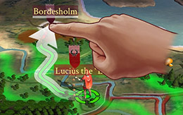 Controls that manoeuvre units on the Campaign Map were based around drawing paths onto whatever you want the units to interact with, be that a peaceful settlement or a threatening enemy army. We then brought these controls to the battlefield so players could draw paths directing their troops into combat.